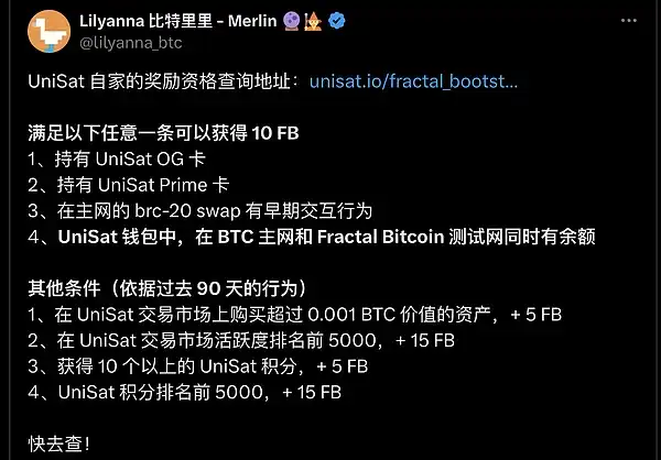 ● UniSat @unisat_wallet 自家的奖励资格开启查询地。