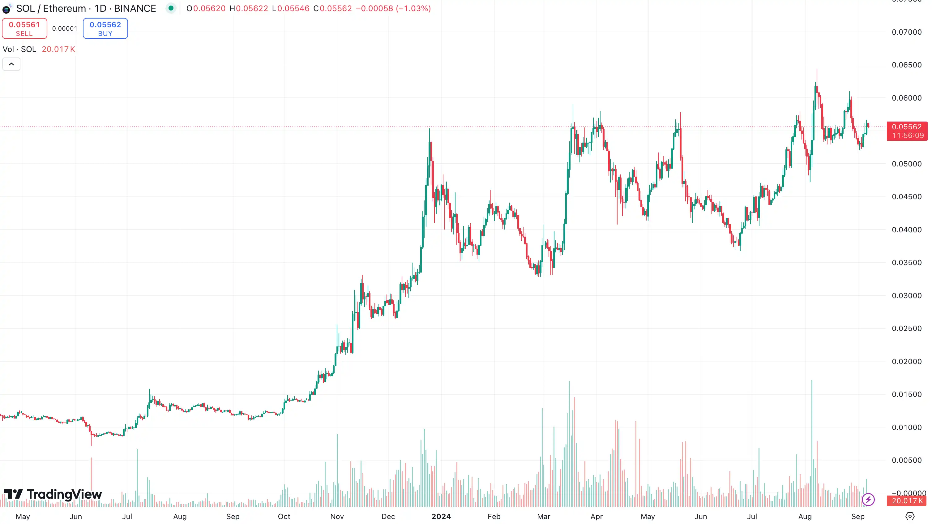 SOL/ETH 汇率自去年底以来始终保持强势上涨