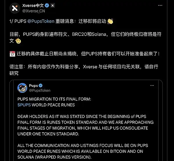 ● PUPS @PupsToken 迁移即将启动,迁移的具体截止日期尚未揭晓,但 PUPS 持有者们可以开始准备起来了。