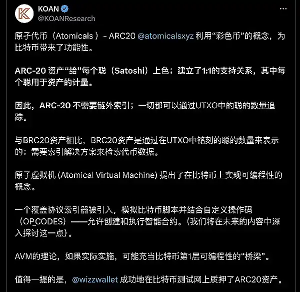 ● ARC-20 标准通过彩色币技术在比特币上简化资产管理,每个聪代表一个代币单位,支持动态更新和增强功能性。
