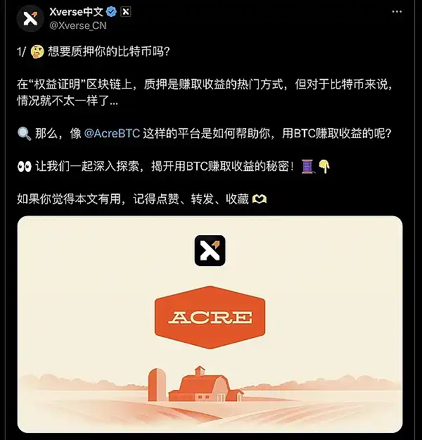 ● Stacks Nakamoto 升级完成,Acre 联合 Xverse 开启了质押。