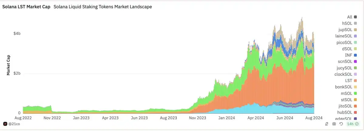 · 自 2023 年第一季度以来,LST 的市场份额已经从总质押量的不到 2% 增加到如今的超过 6.5%。