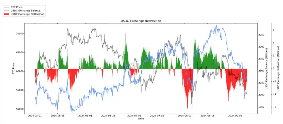 4. 交易所净头寸整体呈现 BTC 少量流⼊累积,ETH 中量流⼊累积。