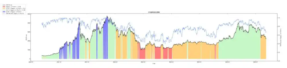 ETH 当前的流通状况更好,占比更高。通常表明市场有较高的风险偏好,可能整体的稳定性仍然不足。市场可能在 ETH 流通占比较低时,可能会逐步地趋于稳定。