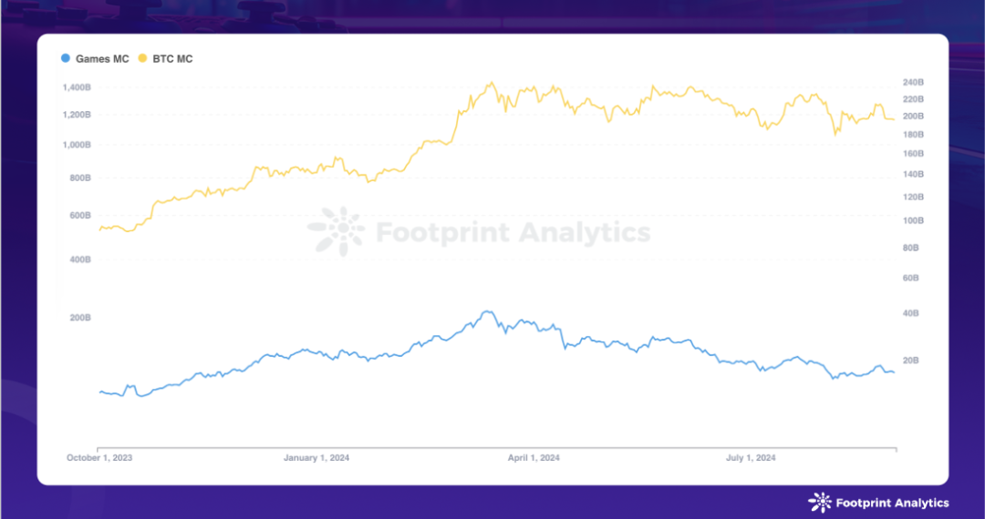 8 月份,区块链游戏代币的市值从 18.2 亿美元下降至 15.3 亿美元,下降了 13.2%。相比之下,比特币的市值下降了 8.6%。区块链游戏行业与加密市场的其他部分一样,经历了艰难的一个月。