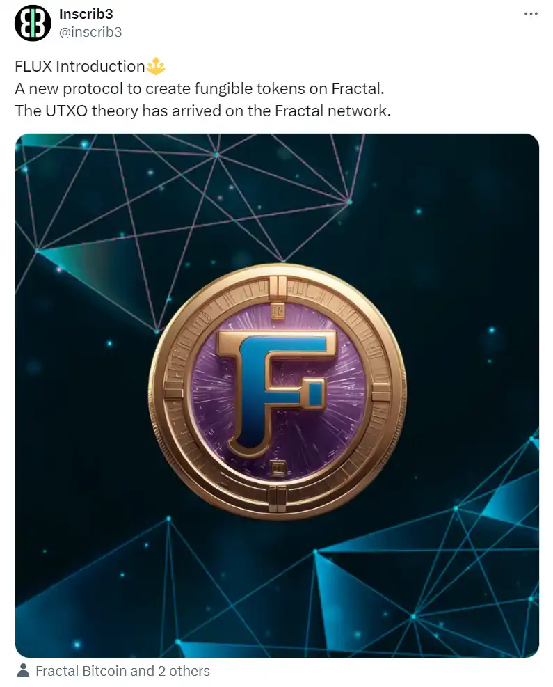 这个项目方之前在 Pipe 生态和符文都有过「创业」经历,关于 FLUX 收费以及协议整体很像搬运 Pipe 协议的争议我在这里也不想多提,因为没有必要纠结在这个点上,毕竟场外价格一度触及 50 U。另外尽管 Fractal 已经宣布不会索引区块高度 21000 之前的铭文,但是这个 FLUX 是一个基于 UTXO 的 FT 协议,简单理解就是和符文差不多,不是像 BRC-20 那种建设在 Ordinals 协议基础上的。