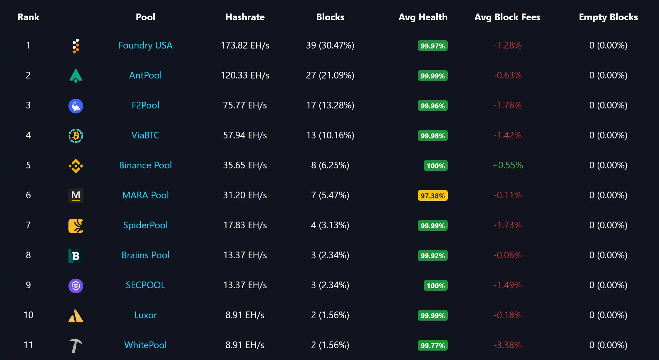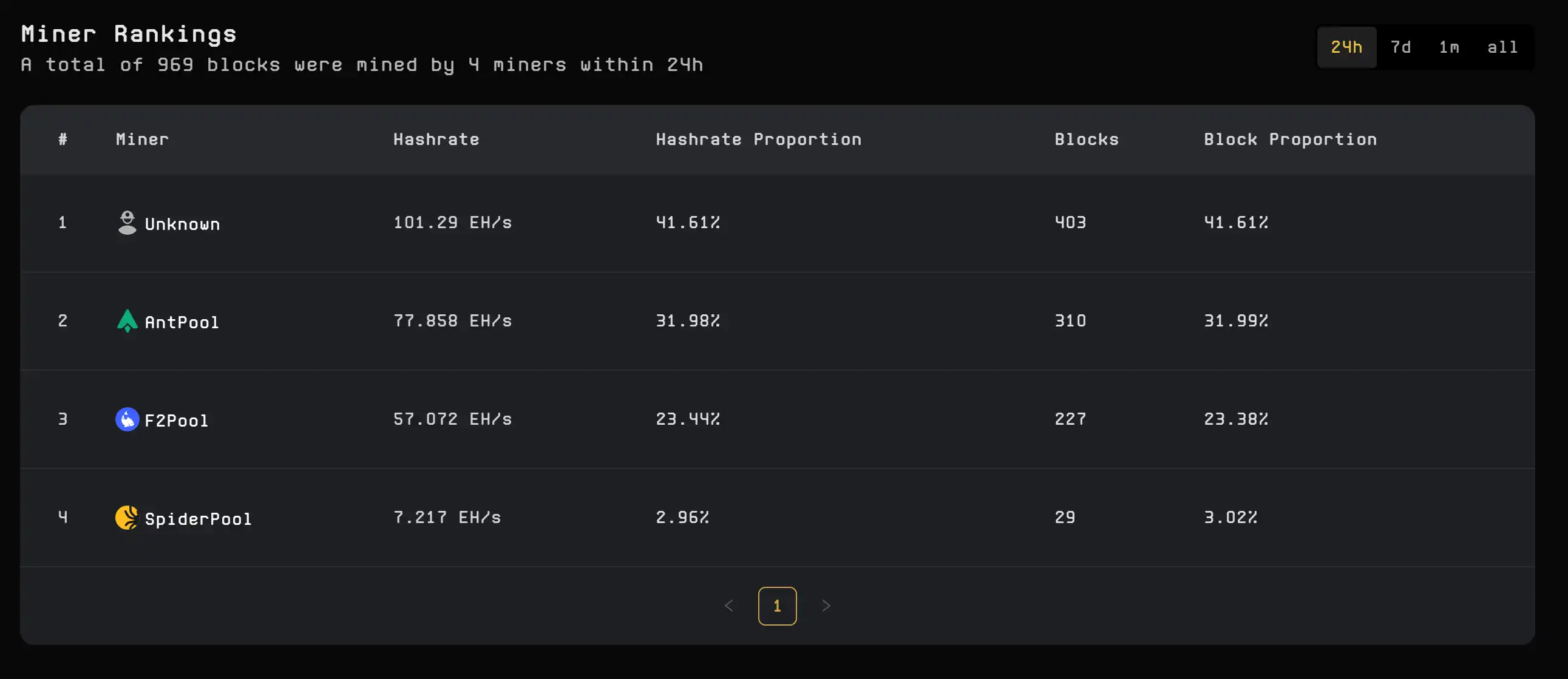 另外,这个第一名的矿池是谁?101 EH/s 的算力绝对不可能是小矿工,只可能是大矿池。看看 mempool.space 上的数据,好像也没有能对得上的,所以这有可能是一股多个矿池的联合势力吗?