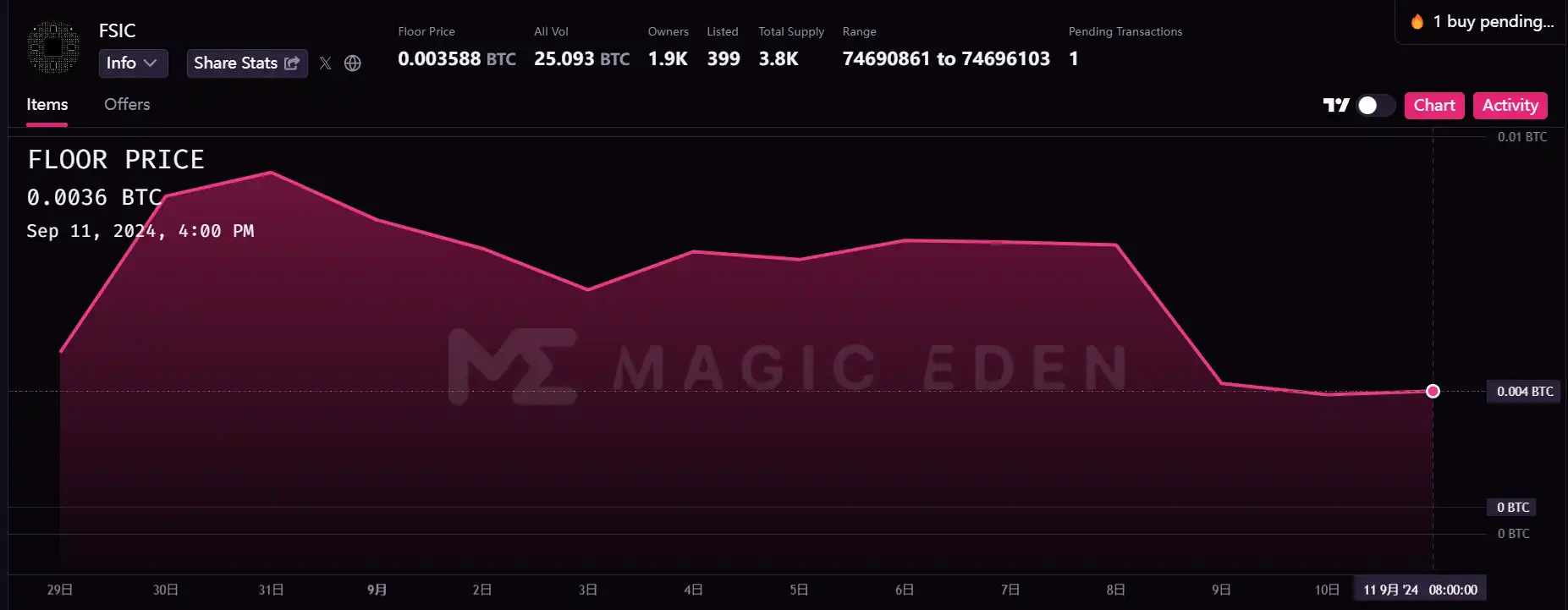 希望通过租赁算力和持有算力 NFT 参与挖矿的小散也是血亏。FSIC 目前挖到的 $FB 总量是 259 枚,平均到每个 NFT 上是 0.068 枚。FSIC 只是租赁了一年的算力,如果只按照这两天的情况,那么一年平均每个 NFT 大概只能分到 12.4 个 $FB。