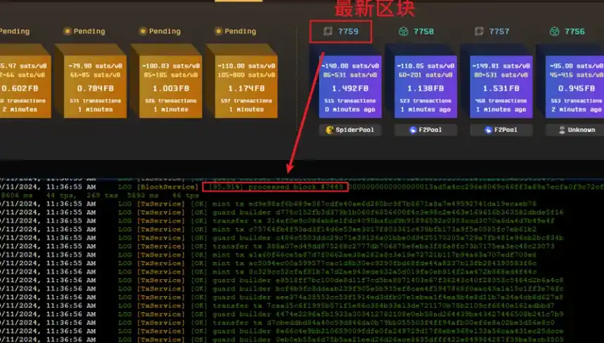 ③ 环境及分形节点安装完毕后已经自动开始同步,再次输入 `bash ~/cat20-oooooyoung.sh` 进入脚本界面,然后输入 4 查看节点同步日志