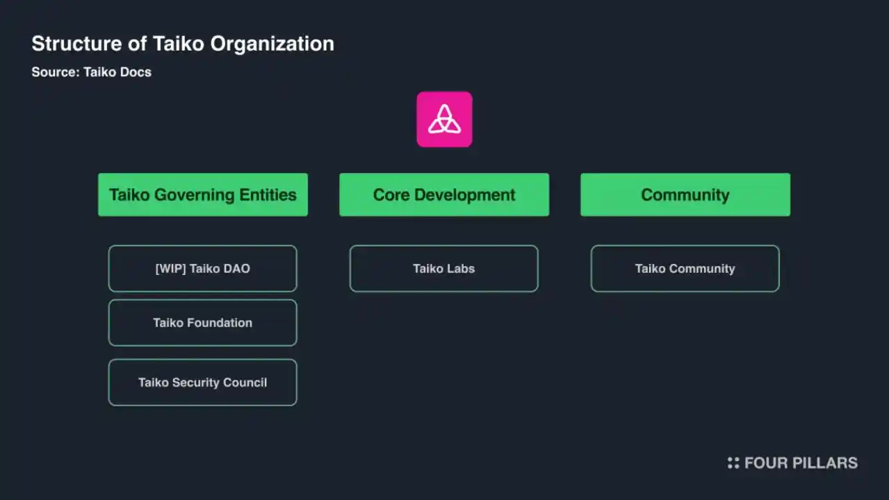 Taiko L2 的组织结构由几个关键部分组成,每个部分在管理 Taiko 生态系统中扮演着不同的角色。
