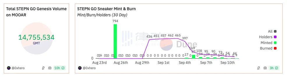 这一点也可以在数据看出,在过去 30 天内,STEPN GO 的新用户增量从最初的 400 多人减少到如今的 50 人左右。