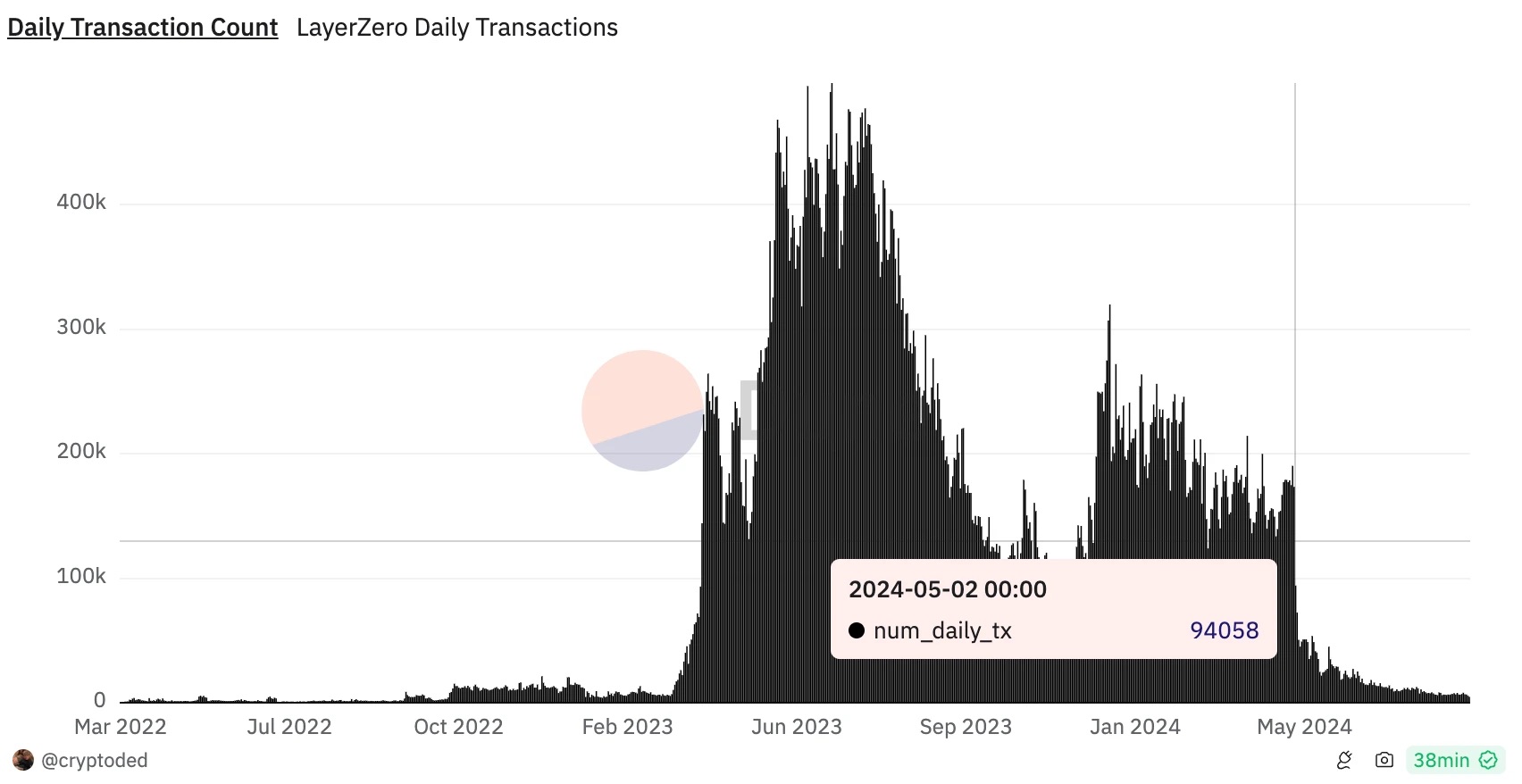 看看 LayerZero 的日交易量,情况变得更加清晰。