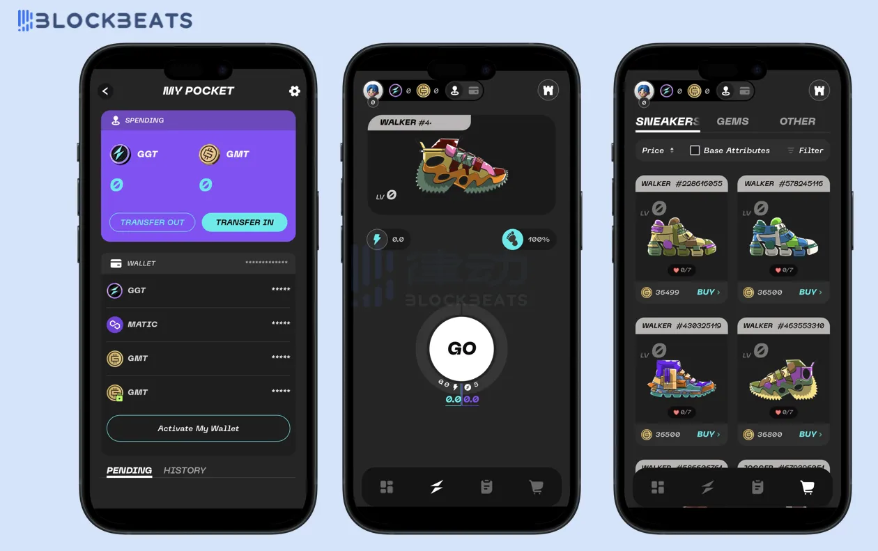 GGT 的获取主要通过完成每日户外运动任务。用户使用 NFT 运动鞋进行运动时,可以选择赚取 GGT。影响 GGT 收益的因素很多,包括鞋子类型、等级、效率属性值、鞋子的品质等。例如,跑鞋 (Runner) 通常比慢跑鞋 (Jogger) 获得更多的 GGT。