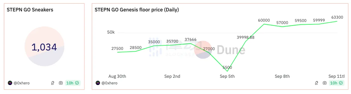 GGT 和 GMT 短期的上涨,对于还没有入场的新玩家来说,并不那么友好。因为 GMT 的上涨也推高了跑鞋的价格,从几天前的 35,000 个 GMT 飙升到了 63,300 个 GMT。