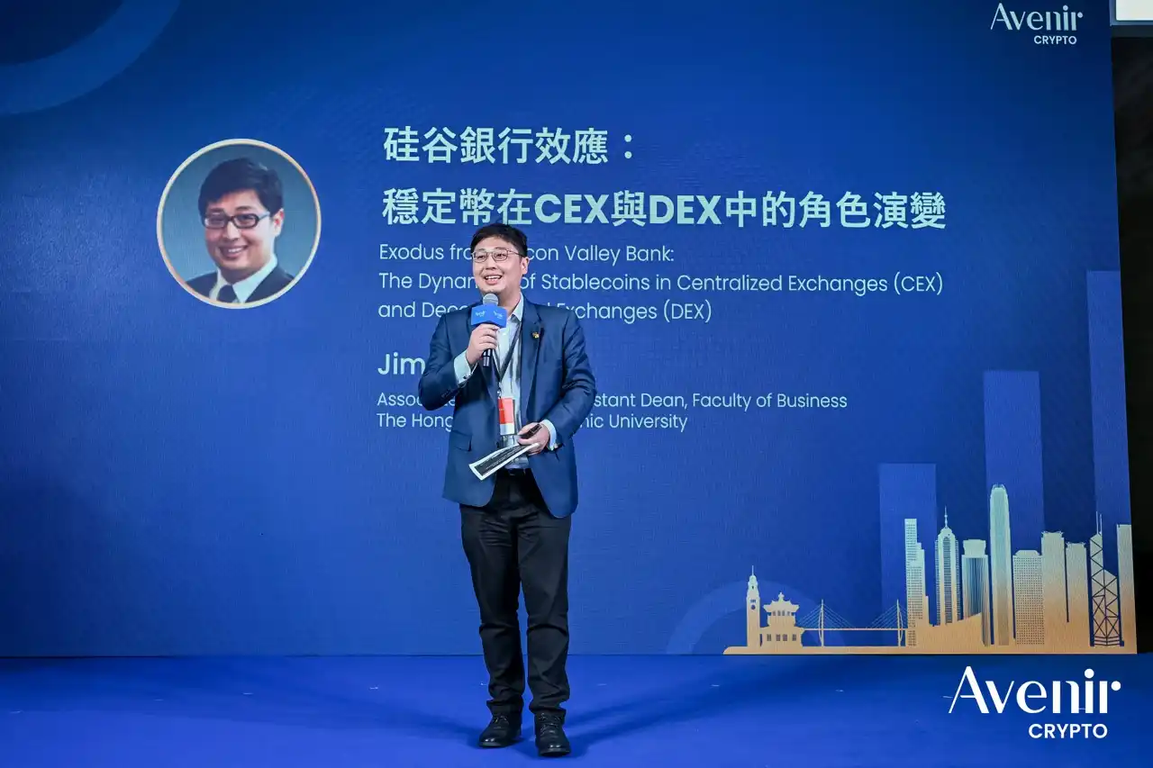 最后,香港理工大学商学院的副教授兼助理院长 Jimmy Y. JIN 从硅谷银行爆雷出发,发表了有关稳定币在当前加密交易中的角色演变主题演讲,JIN 教授同时还担任香港理工大学商业科技与创新中心主任、经济可持续发展及创业金融中心联席主任及管理学博士(香港)课程副主任。研究方向主要涉及金融科技、人工智能和区块链在金融领域的应用、技术管理、数字化转型等。