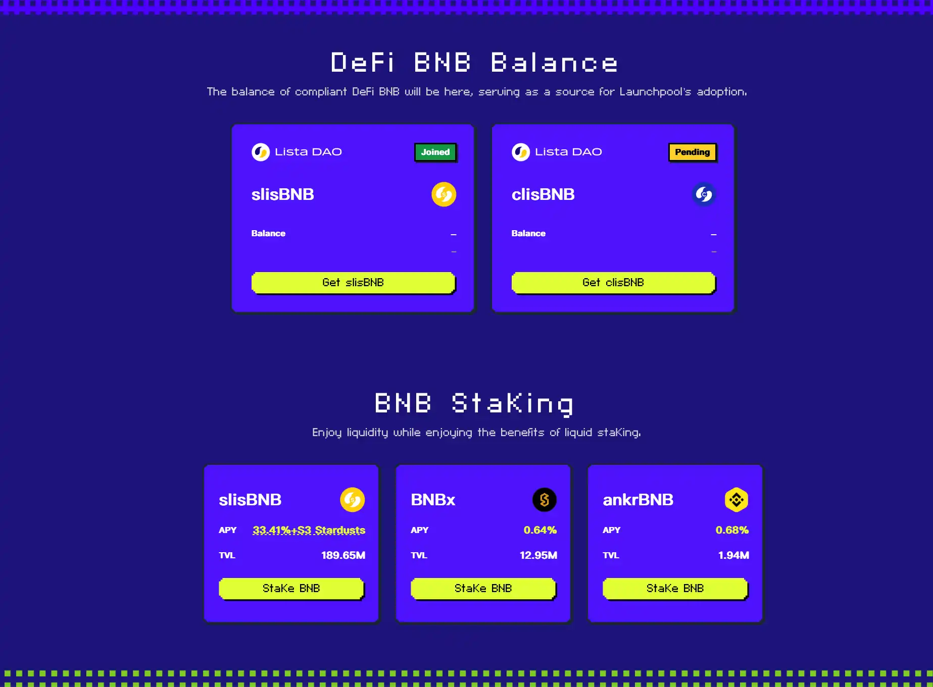 BNB.xyz 将自己描述为一个全面的链上质押平台,针对 CeFi BNB(即 Binance 平台内的 BNB 持有者)和 DeFi BNB(即 BNB Chain 上的 BNB 持有者)用户设计,提供一套无缝的多合一收益聚合方案,以最大限度地提高 BNB 的效用及收益回报。
