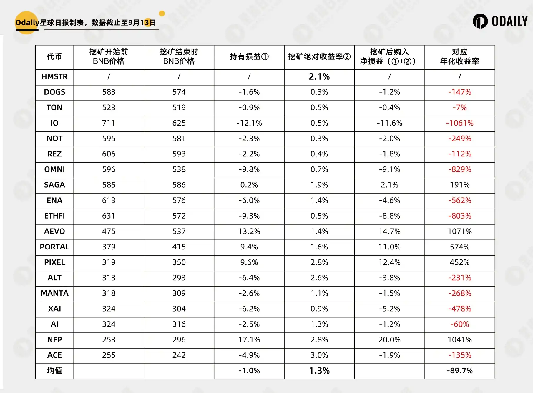 即使按照 6.71 亿美元的初始流通市值计算,HMSTR 这一期的绝对收益率只剩 0.36%,对应年化收益率 19%,远远低于此前的均值 108% 。