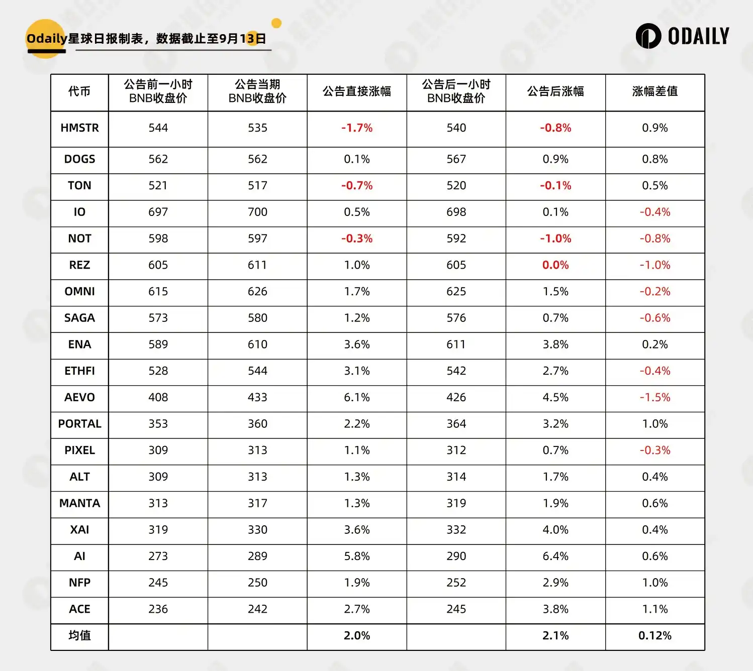 · 涨幅差值(公告后涨幅-公告直接涨幅),负值可能是市场对打新代币信心不足或「内幕」获利出逃,正值则代表市场信心较足。