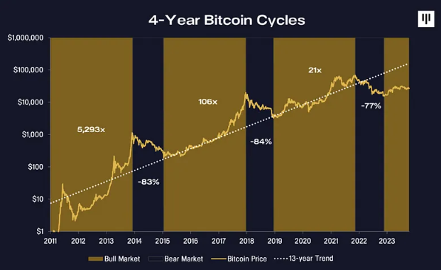 本文将复盘2011-2024年比特币4个周期,深入探讨当前周期的市场变化。