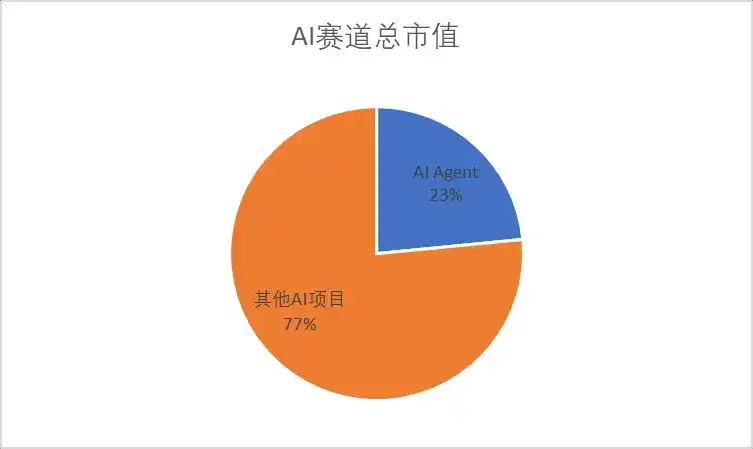在 Web3 行业中,AI Agent 项目覆盖了公链、数据管理、隐私保护、社交网络、平台服务和计算能力等多个方向。从代币市值来看,AI Agent 项目的总代币市值达到了接近 38 亿美元,而整个 AI 赛道的总市值则接近 162 亿美元。AI Agent 项目在 AI 赛道中的市值占比大约为 23%。