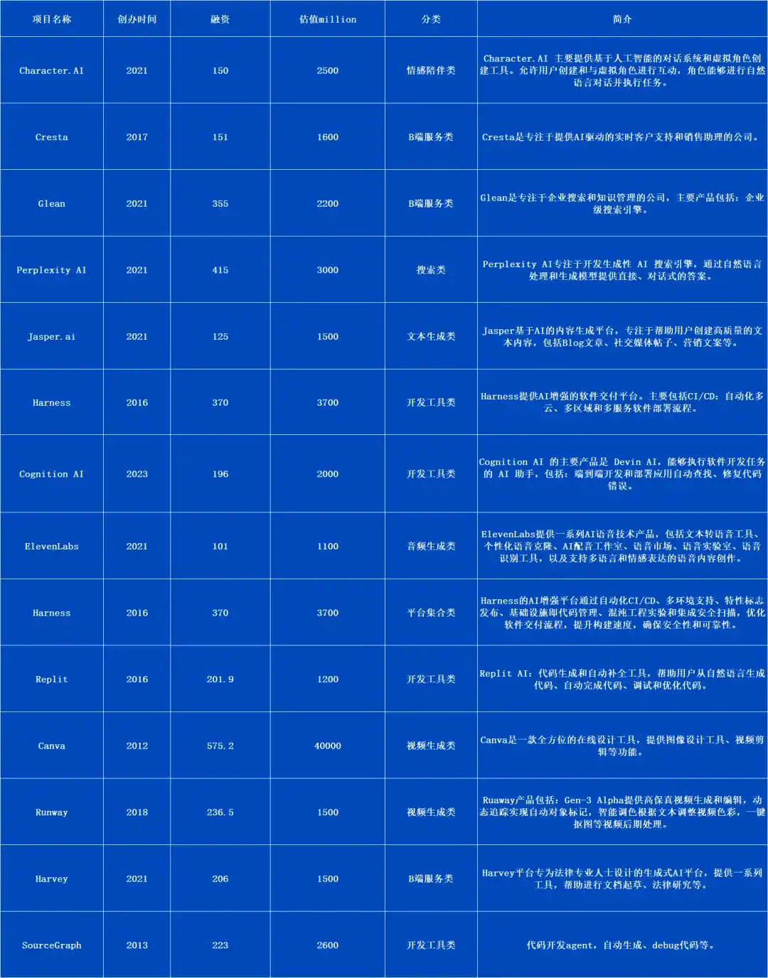 应用场景的限制:与此同时,我们注意到内容生成类 AI 在 B 端市场的应用场景相对有限。由于其产出的不稳定性,企业更倾向于那些能够稳定提高生产力的应用。这导致了内容生成类 AI 在项目库中所占比例较小。