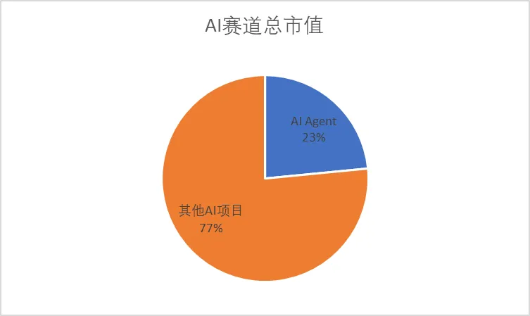 尽管AI Agent项目的数量仅有十余个左右,相较于整个AI赛道的项目来说显得较少,但它们在市场中的估值占比却接近四分之一。AI赛道中的市值占比再次验证了我们对这一细分赛道有很大的增长潜力的验证。