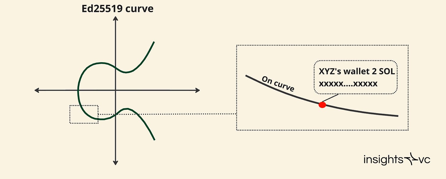 Solana 采用 Ed25519 椭圆曲线密码学来生成公私钥对,从而确保高安全性和高效的交易签名。钱包生成密钥对,公钥用作区块链上的账户标识符,私钥用于授权。交易使用私钥进行签名,以确保数据的完整性和真实性,然后通过公钥进行验证。