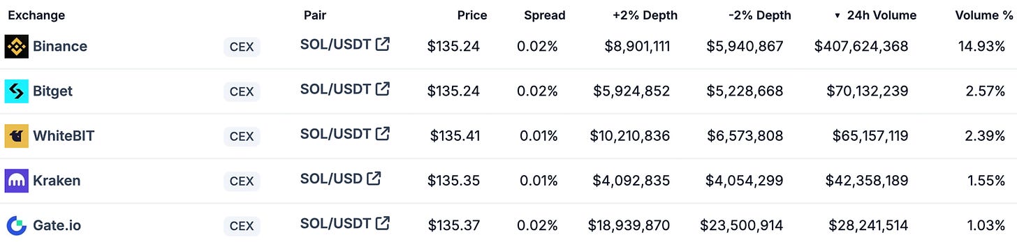 SOL 市场(根据 24 小时交易量排名前 5;9 月 12 日);数据来源:coingecko