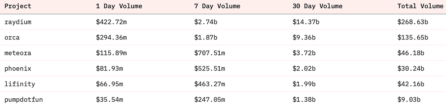 Solana DEX 统计数据