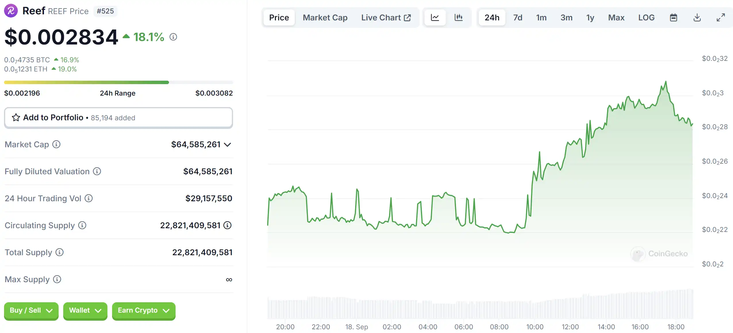 9 月 18 日代币波动情况,按交易量筛选并排列
