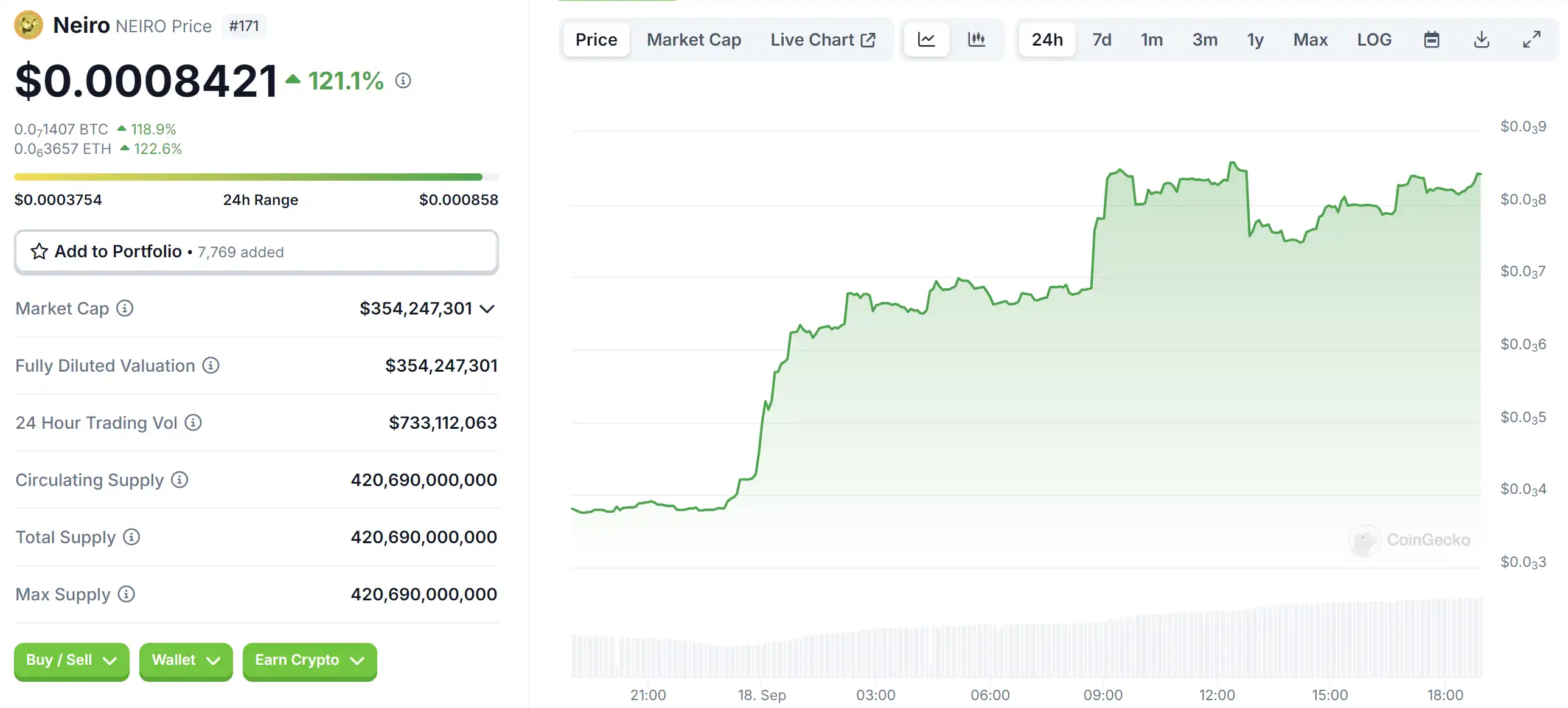 9 月 18 日 meme 资金流动情况,按交易量及涨幅筛选并排列