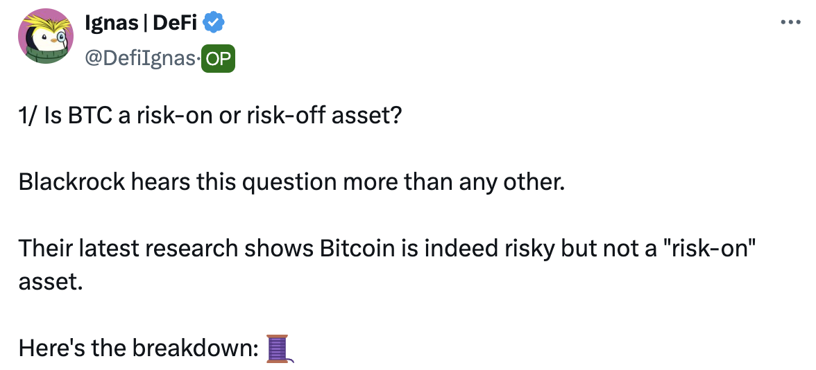 1. 关于比特币是风险资产还是风险规避资产的讨论。@DefiIgnas