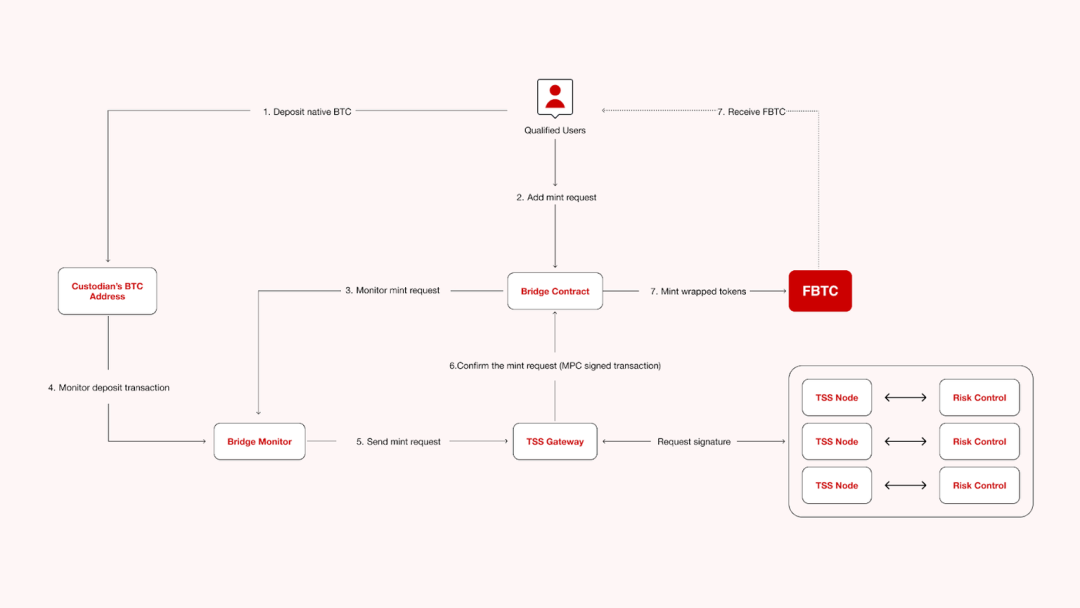 只有在所有条件都满足的情况下,系统才会在目标链上 1:1 地铸造对应数量的 FBTC。