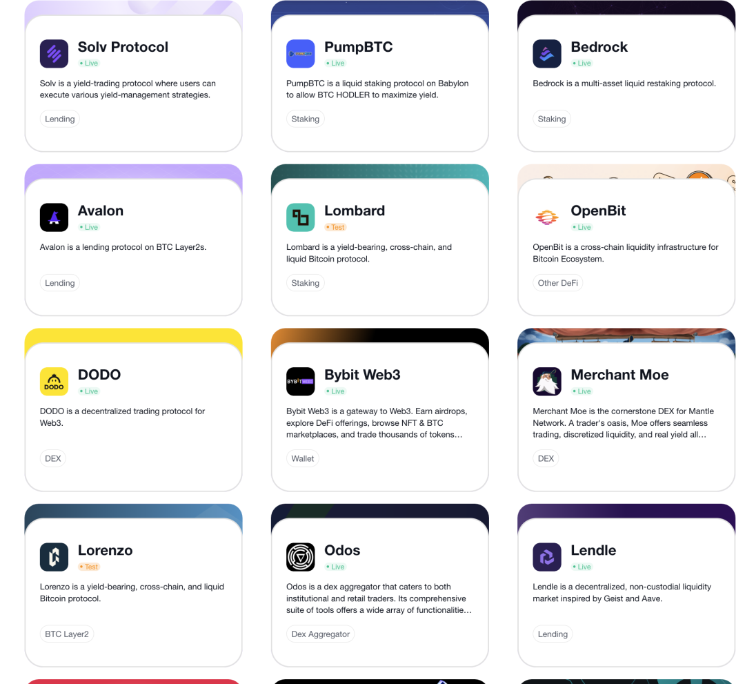 目前集成的合作方包括 Avalon,Bedrock,Solv Protocol 和 PumpBTC。