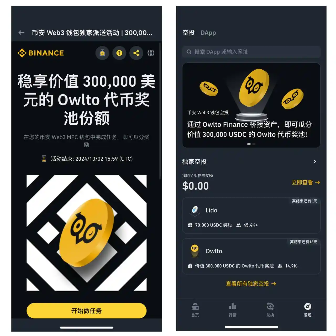 Owlto与Binance Web3钱包开启空投活动,奖池高达30万美元