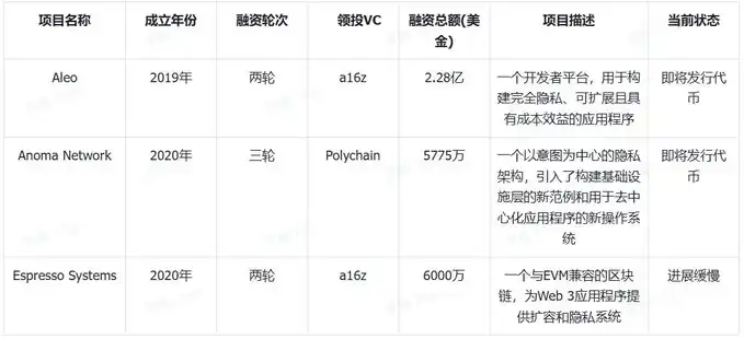 相较于早期已上市的 Layer1 隐私协议,后续未上市的项目展现出了更高的潜力,特别是顶级投资机构的参与,给予了高额的融资,以支持项目持续开发运营,但主要缺点也是普遍开发周期长。