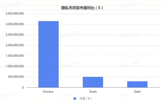 从总体市值来看,该细分领域经过多年的发展,总体市值不到 5 亿美元,规模小,占比不高,在整个隐私赛道仅占 10% 左右。