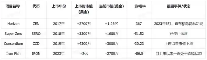 值得注意的是,唯一上涨的项目 Horizen 在 2023 年 6 月,宣布移除隐私功能,据称是项目方为了减轻监管压力。