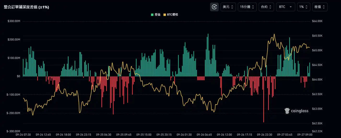 在拉升中的合约订单深度差值大于现货订单深度差值,意味着合约买量大于现货,如果未来没有更多的现货买量时,将会有假突破的风险