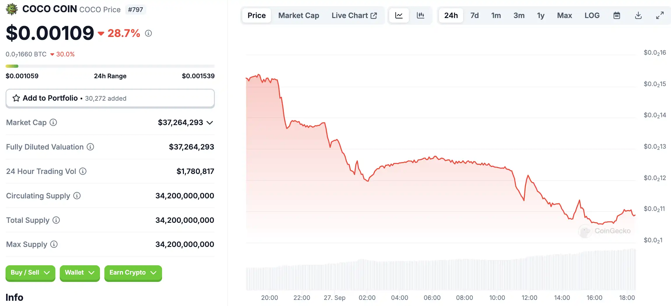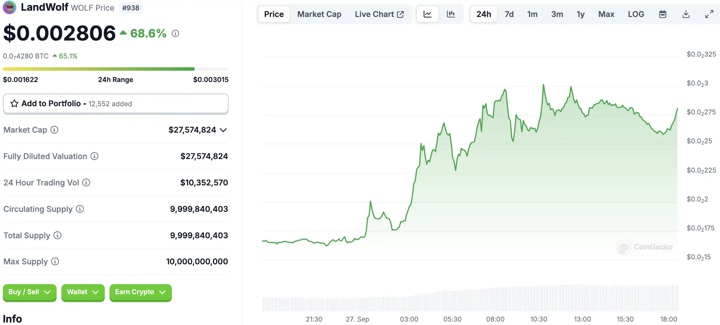 9 月 27 日代币波动情况,按交易量筛选并排列