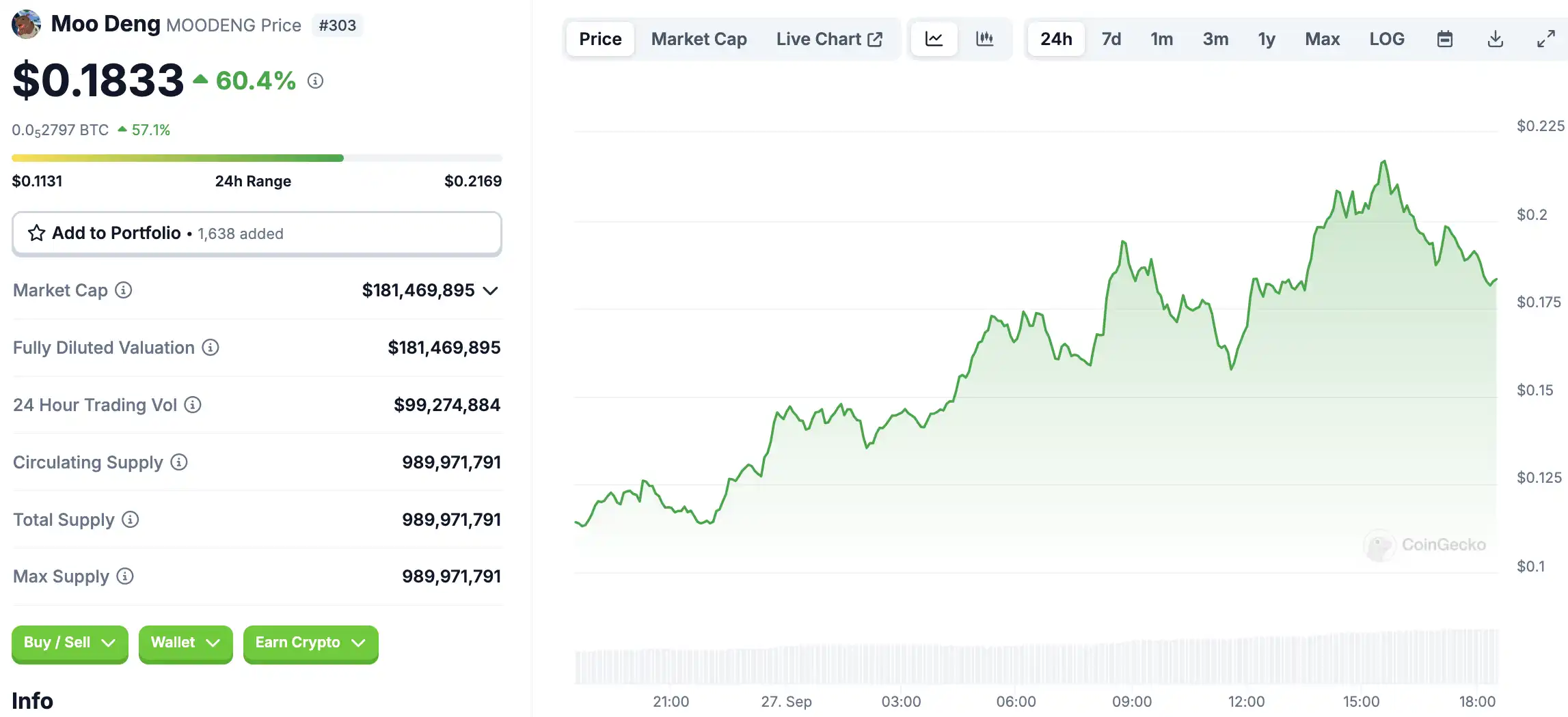 MOODENG: MOODENG 是一种基于 Solana 的 meme 币,因其病毒式传播和市场价值显著增长,成为加密货币讨论中的最大赢家。这种受小型侏儒河马 Moo Deng 启发的币种吸引了加密爱好者和主流观众的关注,许多用户对其达到数十亿美元市值的潜力表示兴奋。该币的受欢迎程度还得益于与其他热门 meme 的关联,以及它吸引新用户进入加密领域的能力。尽管存在一些怀疑,整体情绪依然积极,许多人将 MOODENG 视为一个有前景的投资。