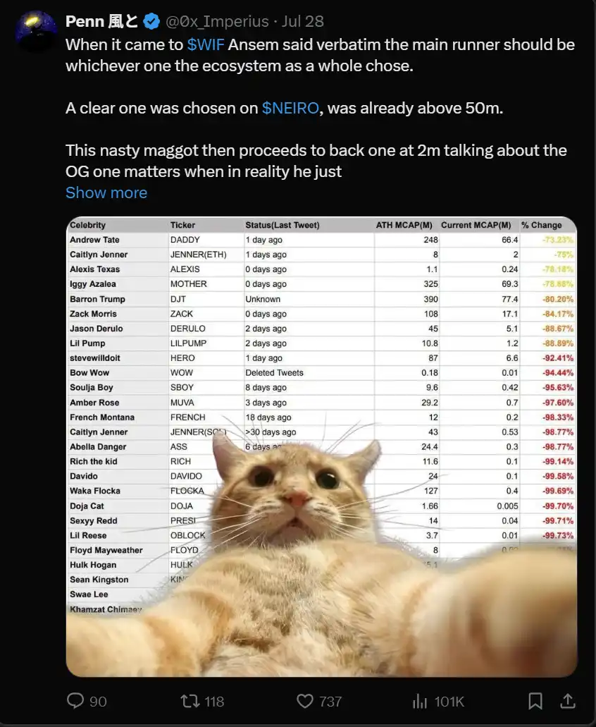 除了跑路和 MEV,零售市场的前景仍然黯淡。名人们选择了 Solana 作为他们的首选链,但结果并不理想: