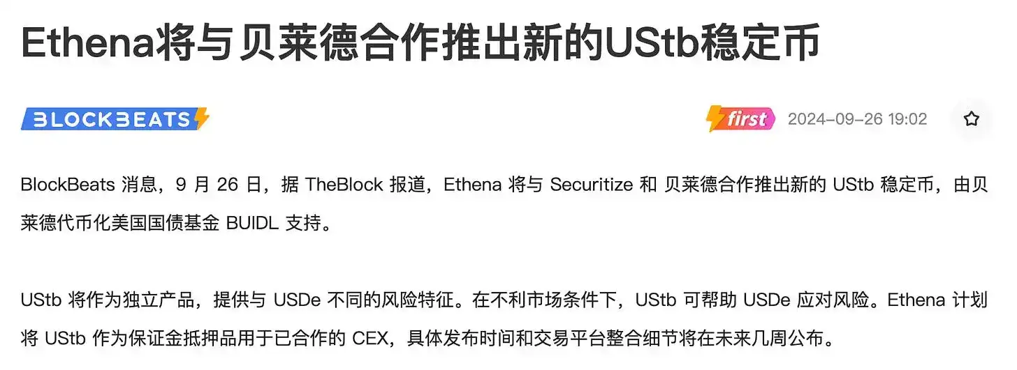 而 $ENA 的竞争力在于:「这个周期出来的新型稳定币」和「与贝莱德合作推出新的 UStb 稳定币」。这个合作形式的影响力要比那些参与贝莱德 Buidl 基金的项目大很多,深度合作是最好的催化剂。$ENA 最近的空投和解锁应该会给到我们入场的机会。