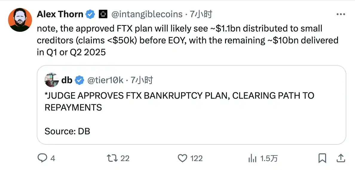 然而,考虑到 FTX 相关债权也已在市场上流通许久,大量原始债权人出于尽早变现的需求,已将其债权交易给专业从事破产理赔事务的机构,这部分资金预计很难再次回流。