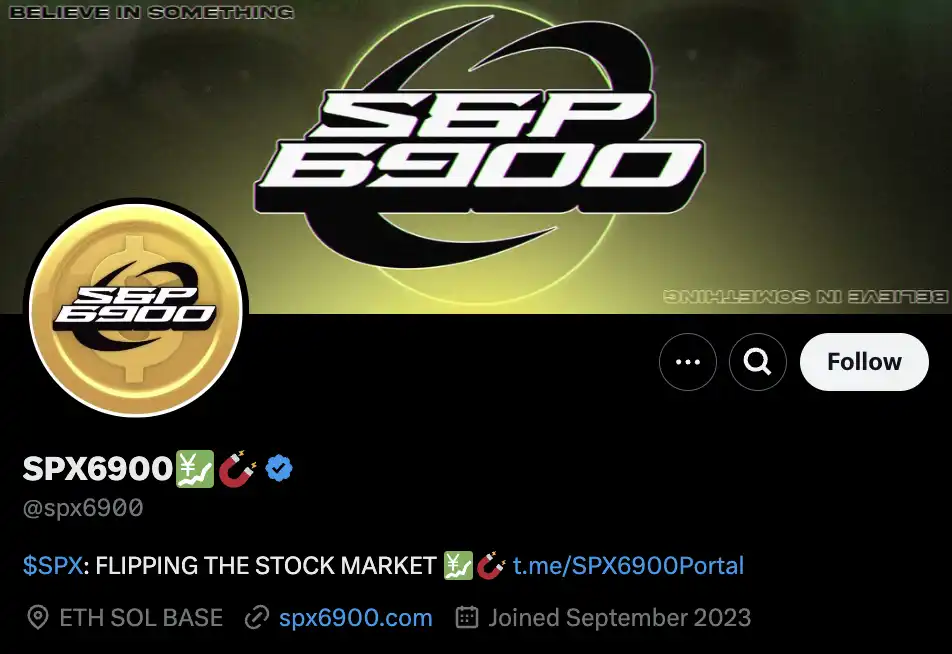 看到 SPX6900,你会想到 S&P 500(标准普尔 500 指数),SPX 的概念是「FLIPPING THE STOCK MARKET」翻转股市。持有 SPX 的人会自发制作 SPX6900 的图片或视频。在有点穿模的动漫少女造型、持续滚动的+6900 符号中,大概可以拼凑出一个叙事:可爱少女拯救币圈。