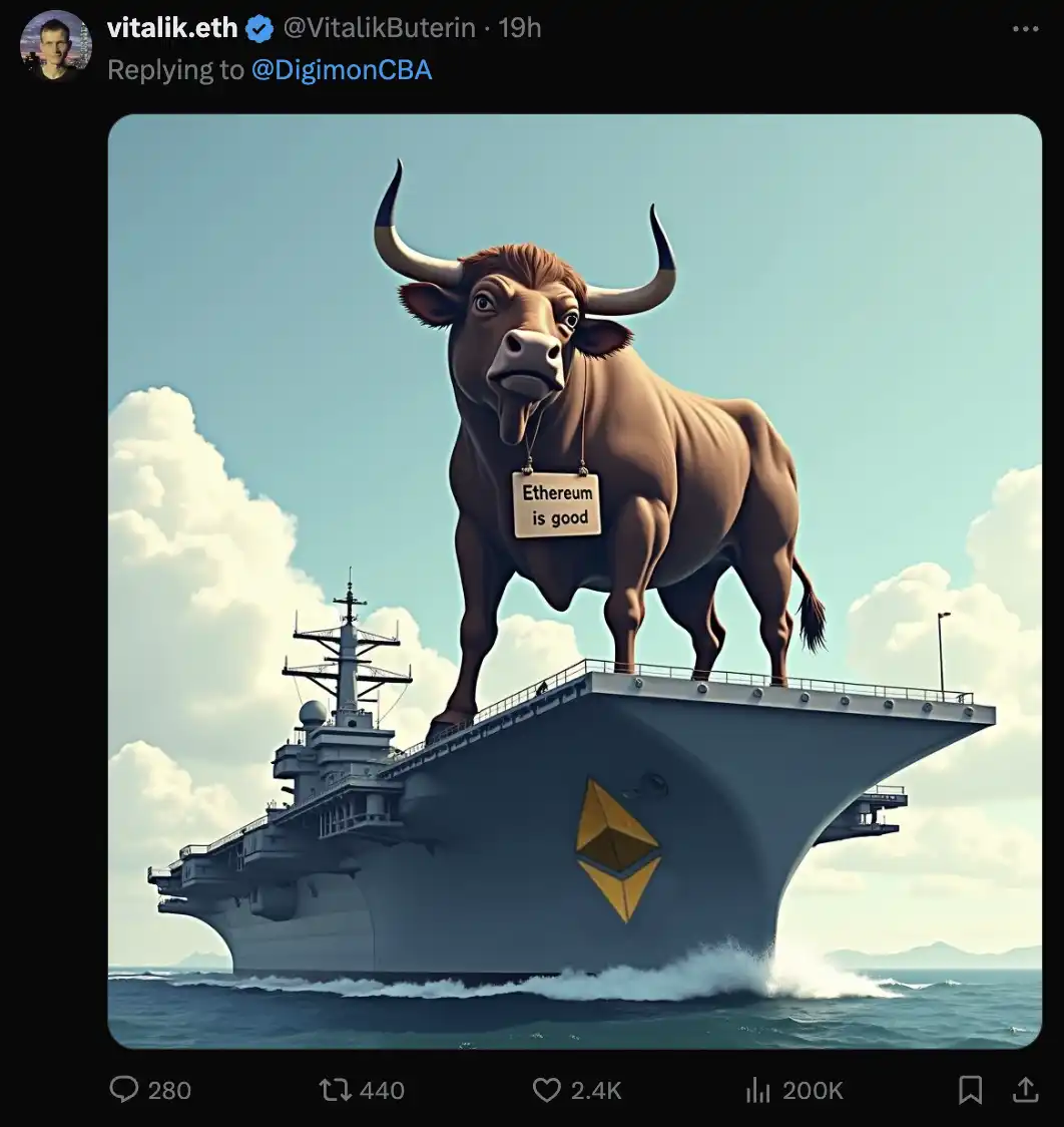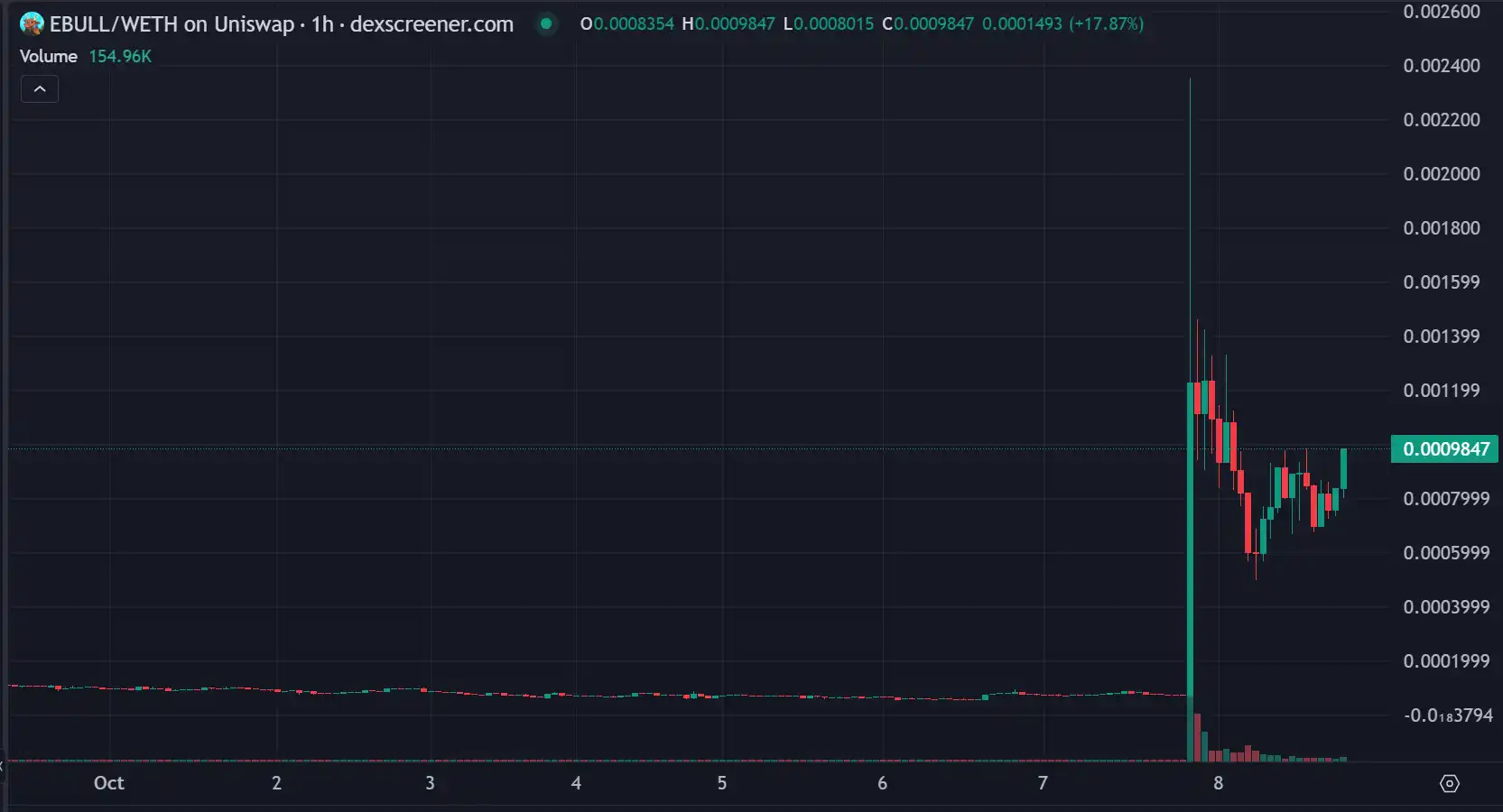 10 月 7 日,以太坊链上 Meme 币 EBULL 过去 24 小时涨超 2000%,市值突破 1700 万美元。EBULL(Ethereum is good)的灵感来自 Vitalik Buterin,Vitalik 之前曾多次发布过这个以太坊牛市表情包。