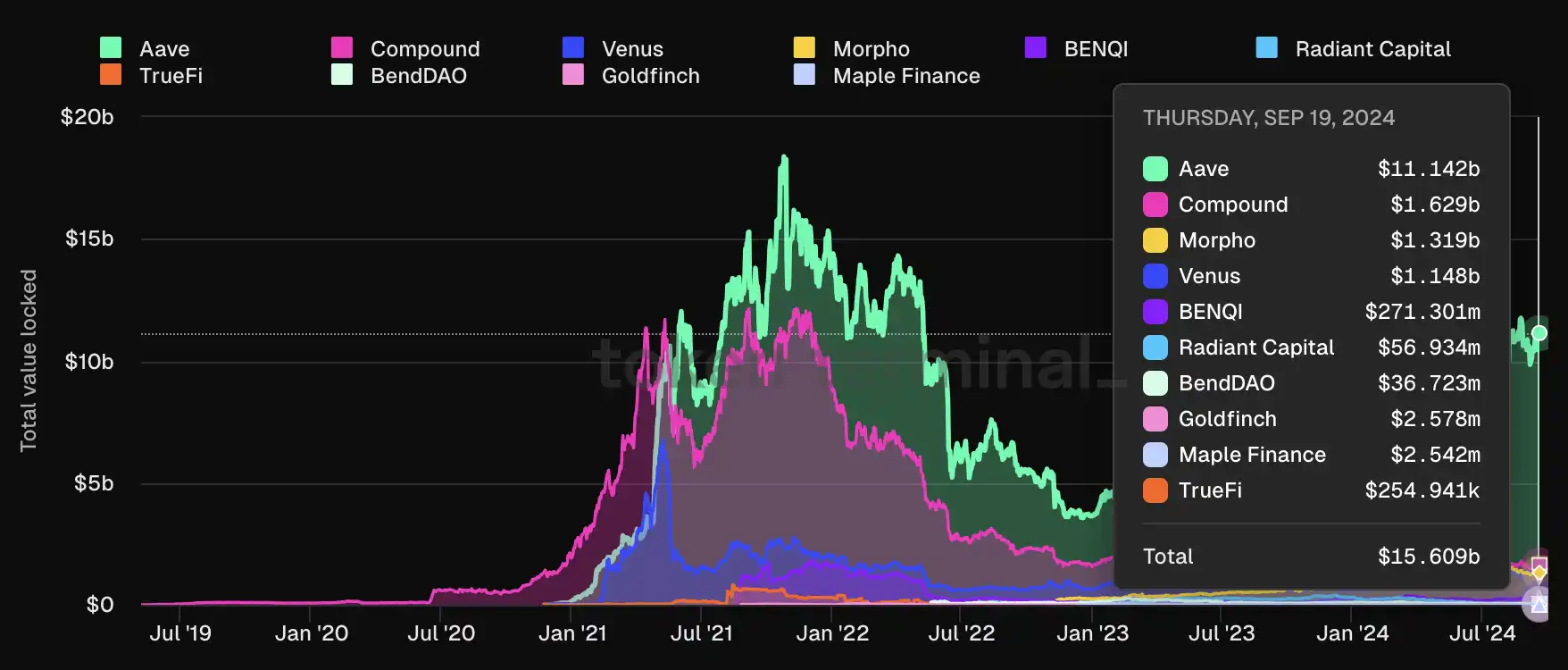 其中借贷平台作为链上资金容量最大的赛道之一,甚至说是最重要也不为过,因为 TVL 更高的 Liquid Staking 本身某种程度上只是 Wrap 的渠道,需要 Lending 和 Dex 等平台才可以拥有流动性和广泛用例。