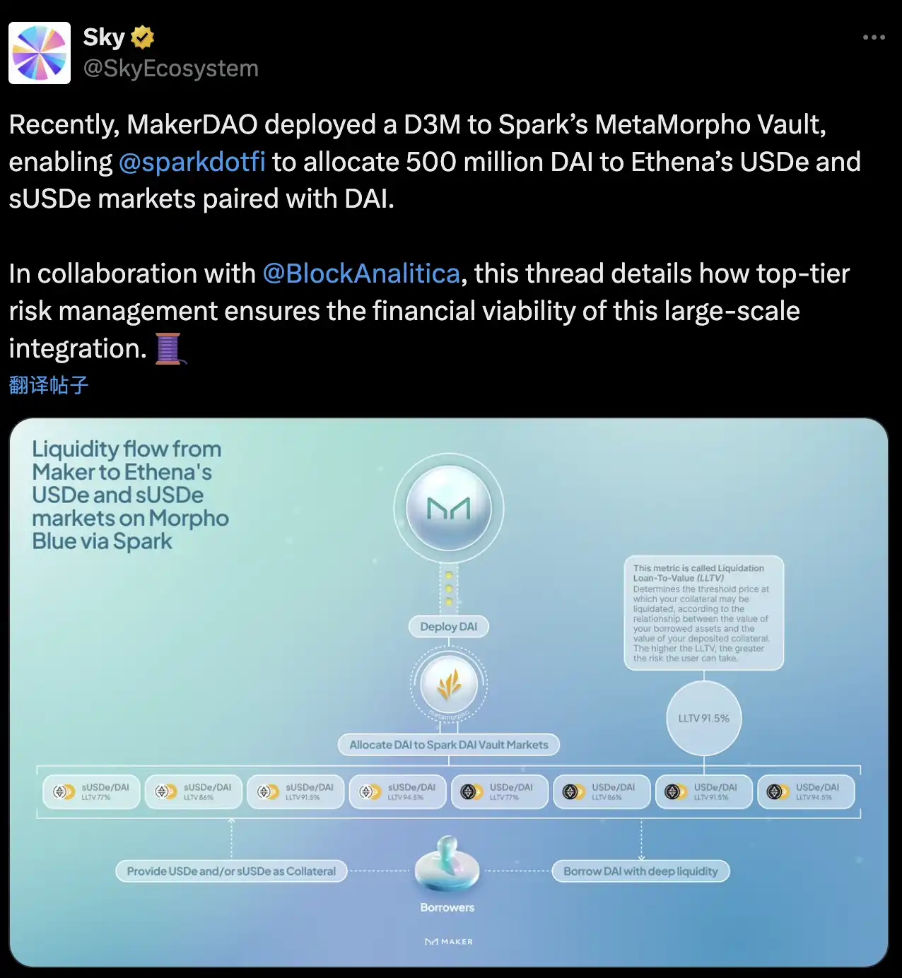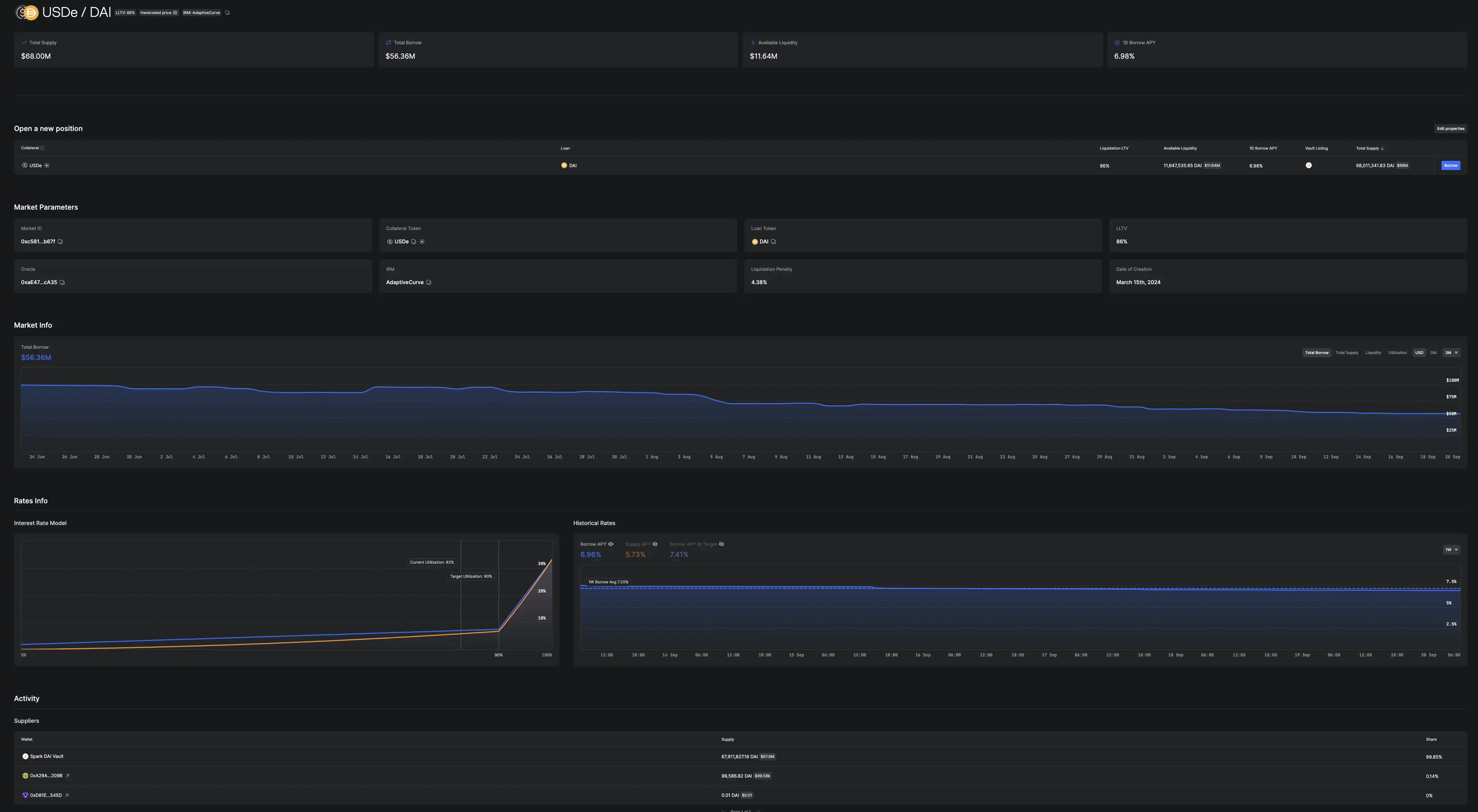 Morpho 某种程度上可以被当作企业级托管平台,公开透明,可以追溯。同时又满足了开发者和企业构建所需的任何功能,并保持完全控制权的要求——无需将治理权交给第三方或 DAO。今年 6 月份,Sky(MakerDao)就使用 Morpho 构建其 DAI 与 USDe 的借贷用例。