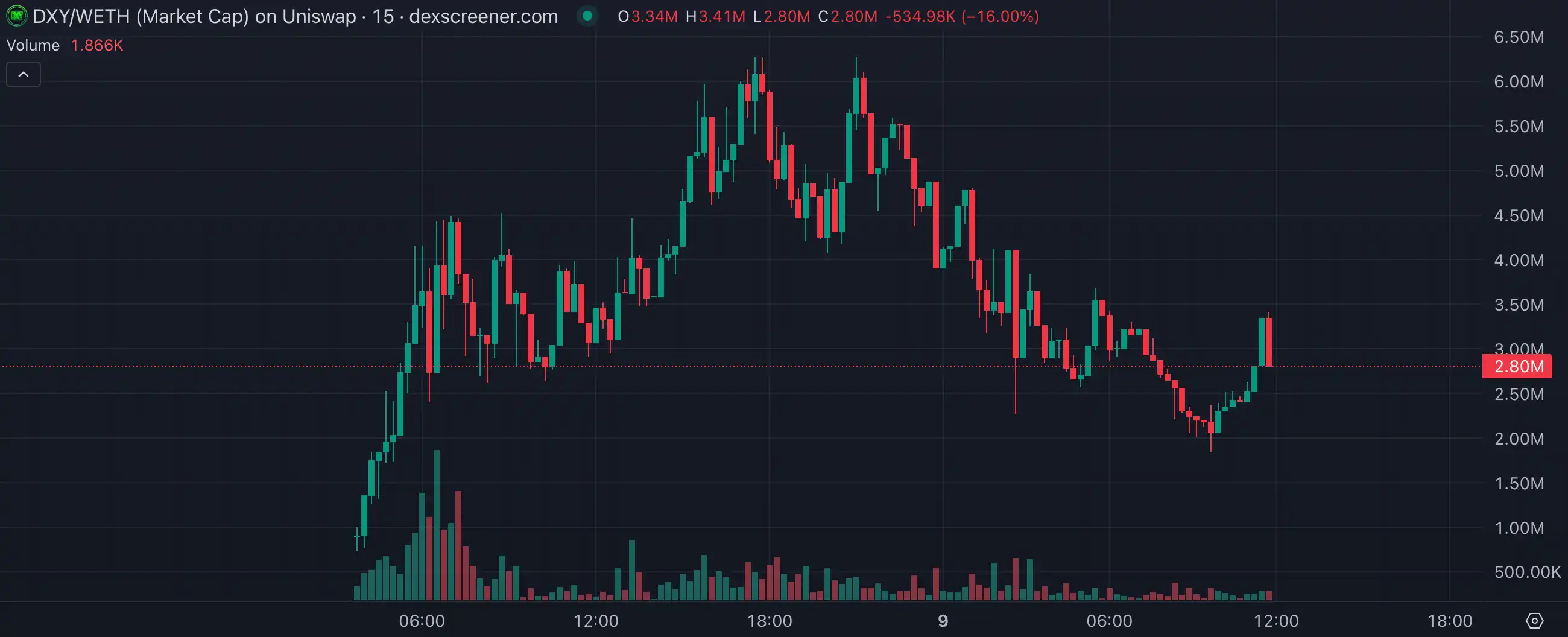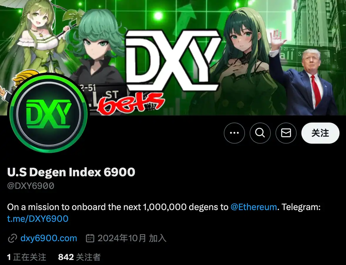 这同样是以太坊上的 SPX6900 仿盘,以美元指数 DYX 为 meme 灵感来源,不过与前几者相比,该 meme 的热度并不算高。