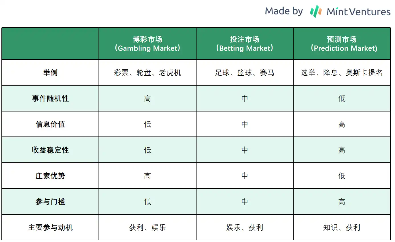 · 狭义上的预测市场通常不包含传统博彩和体育博彩,更强调信息发现和公共决策参考功能